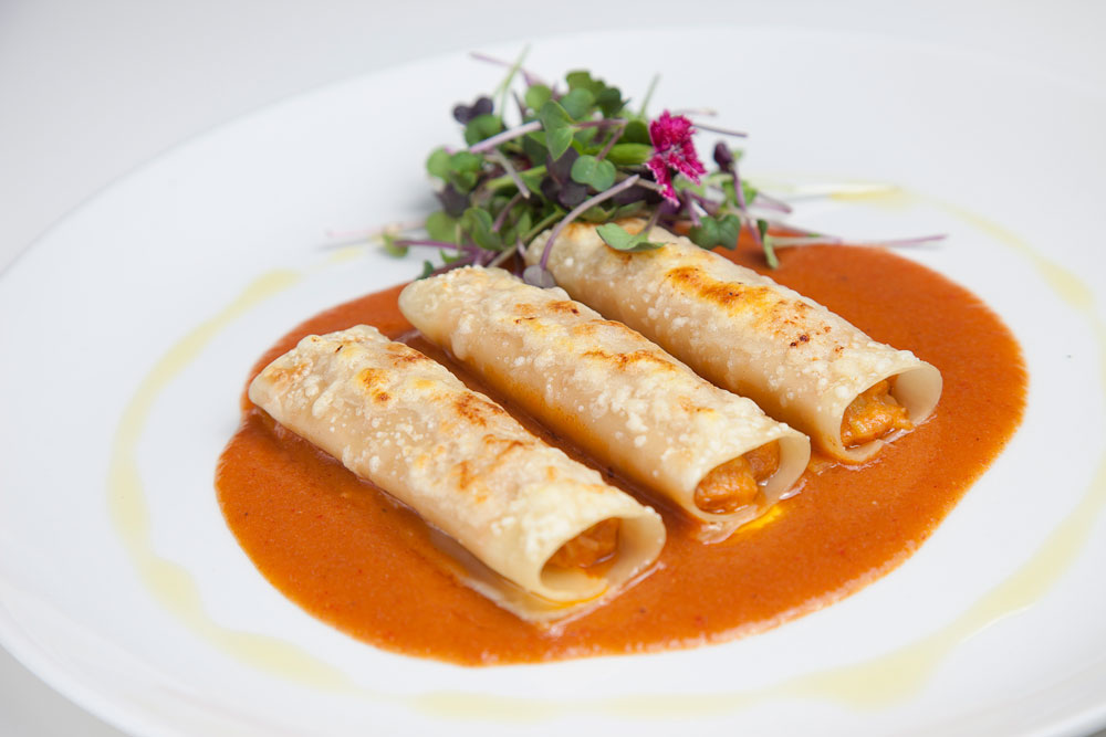 CONSEJO DE AMIGO: ¿El canelón? Está relleno de txangurro con salsa de carabineros.