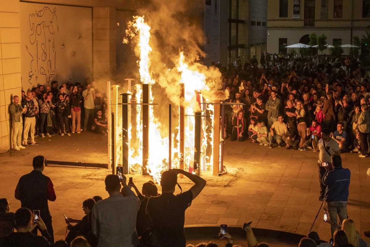 Un any més tard comissarià i dissenyà Alfredo Ruiz. Camins cap a la modernitat en les falles (IVAM, 2023). “Va ser una exposició que va tindre moltíssim èxit. I a més va culminar d’una forma molt bonica, que va ser cremant la peça d’Alfredo, el ‘Bosc geomètric’”. En 2024 va tancar eixa etapa amb Pólvora, cos, so, una investigació sobre la pirotècnia des de l’art sonor. “Vaig estar anant a visitar pirotècnies, a conéixer un poc tot el procés de fabricació i tota la composició que duia a terme una mascletà. I vaig gravar individualment tots eixos petards. I els artistes sonors ho van usar com a material per a peces més experimentals tipus Nvcli, fins a cançons de pur tecno’.”