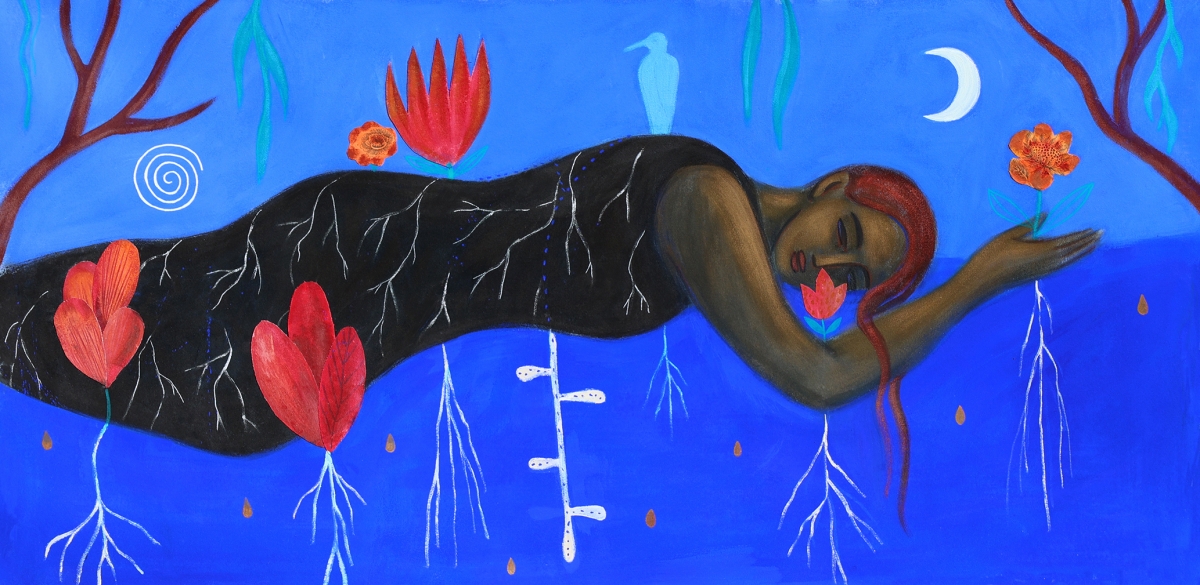 El jardín que habita estas pinturas es un espacio de convivencia entre opuestos: las serpientes y los pájaros, los ángeles y las flores, las estrellas y el fuego, los recuerdos y los sueños. Su música es el silencio; su ritmo, el agua y la brisa. El azul es el color protagonista, aunque todos los colores son bienvenidos en este universo pictórico. Al igual que la pintura, el jardín es entendido aquí como un lugar donde lo visible y lo invisible coexisten, donde evocar e imaginar son actos tan reales como ver.