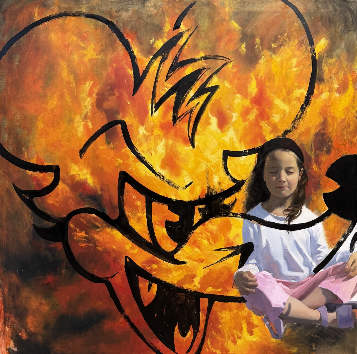 Lo hace desde “la aparente inocencia de la infancia se transforma en el velo de una sátira mordaz. Iconos entrañables de la fantasía infantil -esos pilares de un mundo despreocupado- se yuxtaponen con criaturas de pesadilla interna: lobos astutos y ratones susurrantes que encarnan los miedos, las ansiedades y esas voces ocultas que, a menudo, nos impulsan hacia lo prohibido”.