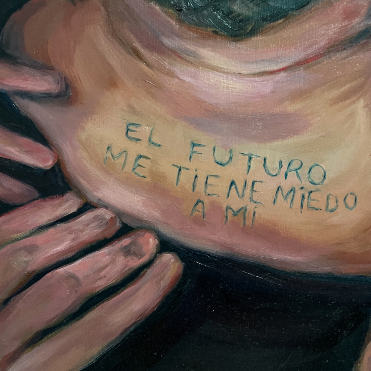 Desde la pintura, Lucía Mir (Elche, 2000) construye escenarios que exploran lo ilusorio y el juego entre lo visible y lo oculto; sus imágenes sugieren espacios suspendidos entre la memoria y la ficción, donde la estabilidad es siempre provisional. Magdalena Lorca (Lampa, Chile, 1997) trabaja la cerámica como un gesto político, entendiendo el barro como materia viva capaz de albergar procesos de transformación, crecimiento y resistencia. Sus piezas sitúan lo orgánico como potencia frente a las lógicas extractivas. Sara Reyes (Santander, 2000) aborda la escultura, la instalación y el objeto cotidiano desde la reconfiguración de lo descartado, alterando su función y generando nuevas lecturas simbólicas que cuestionan la economía de uso y desecho. Sara Mono (Castellón, 1998) concibe la pintura y la instalación como espacios de ensayo donde lo intuitivo, lo corporal y lo onírico adquieren centralidad, proponiendo imágenes que oscilan entre lo íntimo y lo extraño. Por su parte, Celia Marco (Alicante, 1995) reflexiona sobre la agencia de los materiales —cerámica, papel y biomateriales— desarrollando procesos basados en la experimentación y en la disolución de jerarquías entre artista, materia y resultado final.