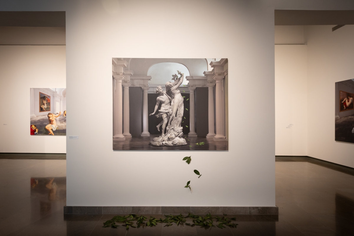En ‘Cuerpos que huyen’ se pueden ver las series ‘La mujer’, ‘De profesión sus labores’ y ‘Paseos por el museo’ donde la artista revisa la tradición pictórica occidental desde una perspectiva contemporánea, dialogando con referentes como Tiziano o Peter Paul Rubens. "Lo que hago es una relectura de la historia del arte denunciando lo que representan algunos de estos cuadros que son violencias hacia la mujer”, ha señalado la artista. Asimismo, en ‘Paisajes de barbarie’ series como ‘La mercantilización del arte’ y ‘Secuencias del Mediterráneo’ denuncian la barbarie de las guerras.