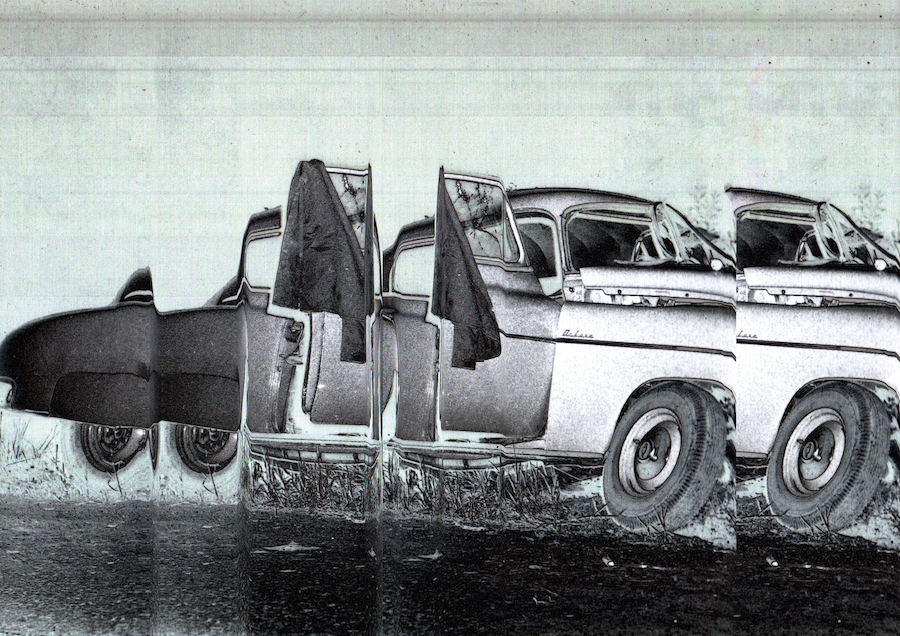 “Me gusta emplear el escáner para hablar de la fotografía desde una parte más experimental. El escáner sirve como una herramienta de transformación y no como un dispositivo de reproducción. En el caso de It’s lucky when you live in America me doy cuenta de que esa deformación en las fotografías da lugar a un metal retorcido que recuerda al de un accidente de coche”, explica el artista.