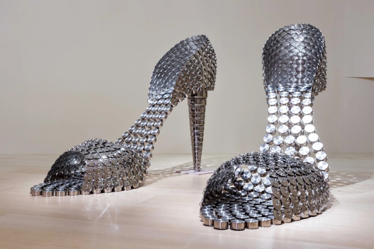 En sus instalaciones utiliza objetos cotidianos asociados culturalmente a las tareas domésticas de la mujer (como cacerolas y planchas), o a la feminidad (como pendientes y zapatos de tacón), hasta convertirlos en gigantescos objetos de culto que interpelan sobre las contradicciones de la sociedad, el consumismo o la actualización del rol de la mujer en la sociedad, como es el caso de las sandalias gigantes hechas con cacerolas 'Marilyn' (2011).