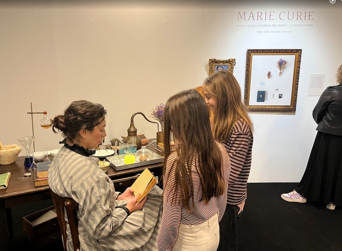 Marie Curie es evocada a través de los tubos con sales de radio que manipulaba con fascinación; Hipatia de Alejandría, mediante un ábaco que remite a sus cálculos astronómicos y matemáticos; Jane Jacobs aparece defendiendo su ciudad con pancartas, pintura y megáfono; o Katherine Johnson realizando complejos cálculos orbitales con una calculadora Monroe, rodeada de hombres en un centro de investigación de la NASA.