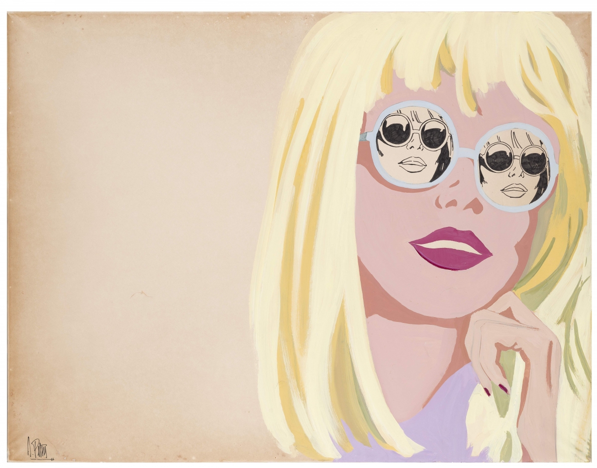 Cierra la nómina de creadoras Patricia Gadea, una autora con una iconografía plagada de personajes de tebeo, grafismos escolares, recortes publicitarios y consignas ideológicas de la que se adquiere una gran pintura.