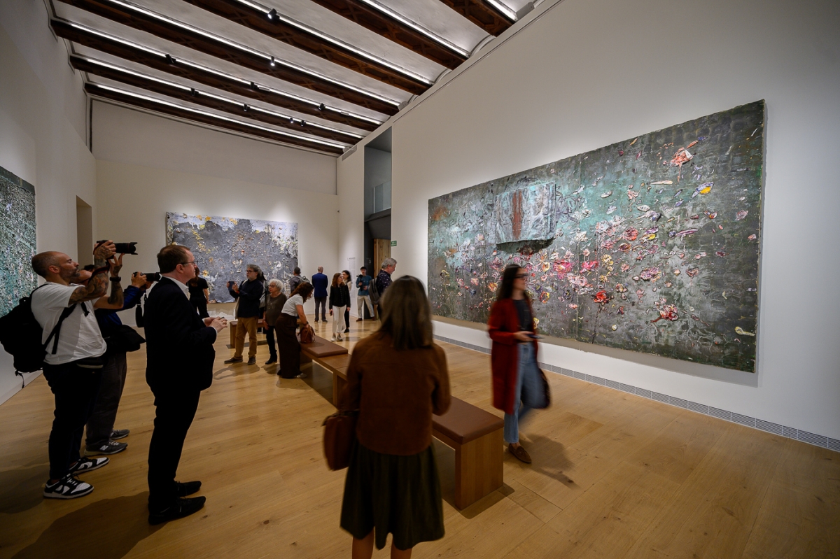 Molins presentó la exposición junto a la mecenas Hortensia Herrero, quien destacó de la obra como “siempre hay luz” a pesar de que el primer impacto sea “duro”. El acto, que no contó con la presencia del artista por motivos de salud, llega tras varios días de intenso trabajo para transformar el Palacio Valeriola, una reconfiguración que ha obligado a mover unas 60 obras y vaciar seis galerías para abrir paso a la imponente obra de Kiefer en un recorrido que incluye la sala de exposición permanente con la que ya contaba el centro, en la que se presentaban tres piezas.