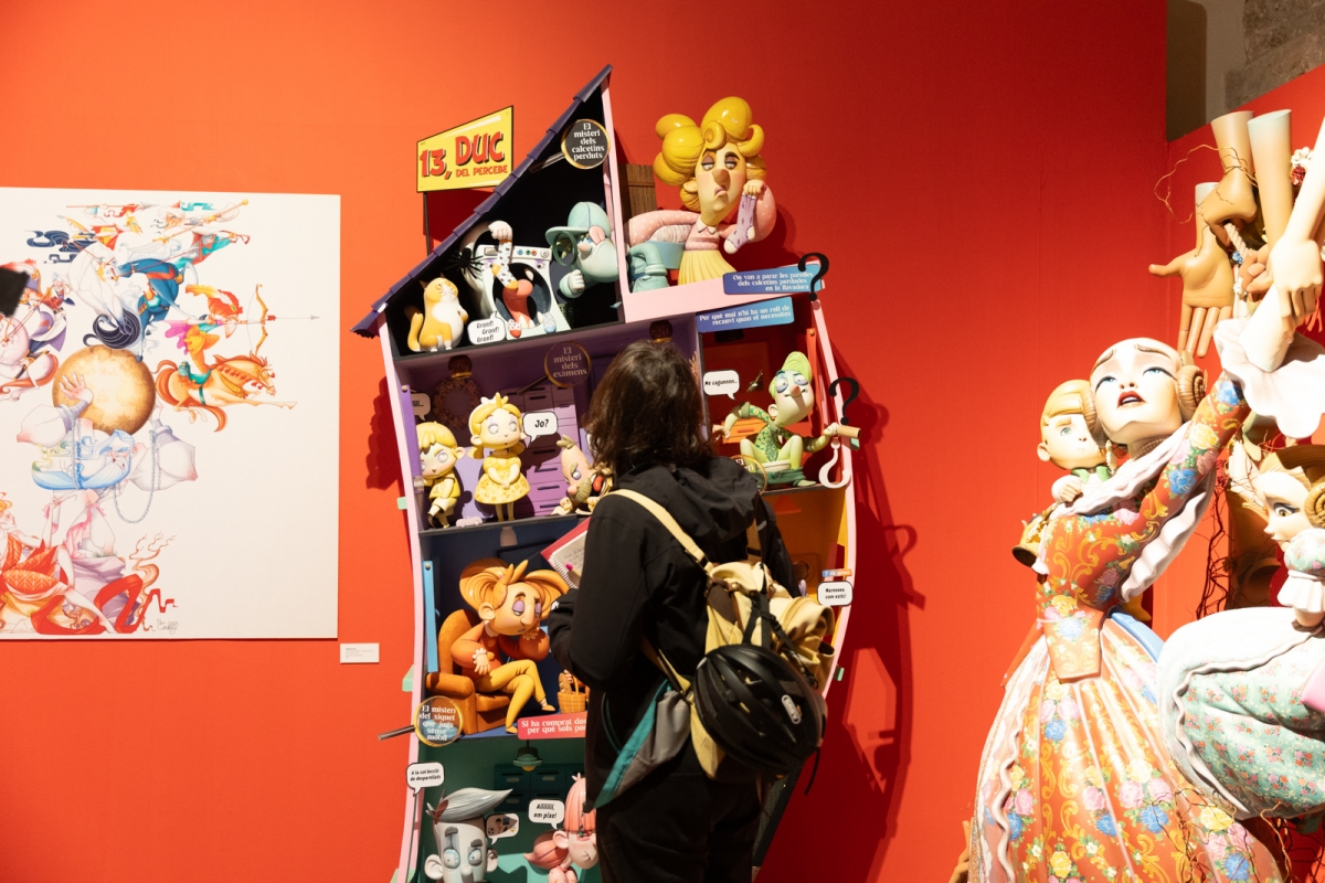 La muestra, que podrá verse hasta el 26 de abril, exhibe sus premiados 'ninots indultats' de las fallas y hogueras de los últimos años, maquetas de los monumentos festivos en 3D, más de 200 dibujos, entre bocetos y cómics, y un audiovisual sobre el proceso de creación del artista. Además, incluye una instalación que disecciona el monumento municipal infantil en el claustro renacentista del museo.
