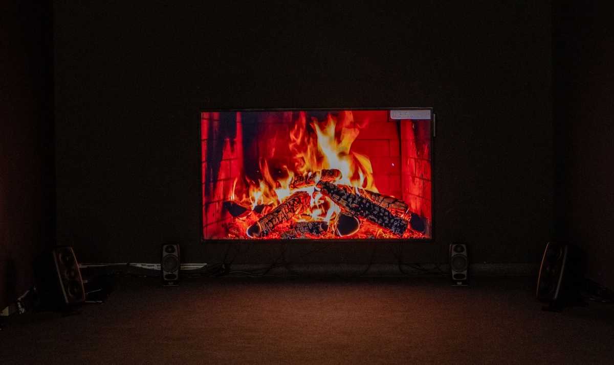 “Mi pieza divide el interior y el exterior del espacio mientras se genera un puzle en el que hablo sobre estar atrapados o enganchados a algo. Entre las piezas hay una relación sobre el estudio y el espacio en el que se ubican estos animales”. Tras los enormes dibujos de Morenilla se pueden ver algunos caracoles y bocetos que se esconden atemorizados de quienes visitan el museo. Al final de la sala, Marco Henri instala una chimenea de fuego sobre un televisor con la que desarrolla H-VC1JD. La pieza es un ejercicio de recontextualización a partir de material sonoro y visual que encuentra en la red y que interpreta jugando con “las ambigüedades de la condición humana y emocional que oscila entre lo rival y lo trascendental”.