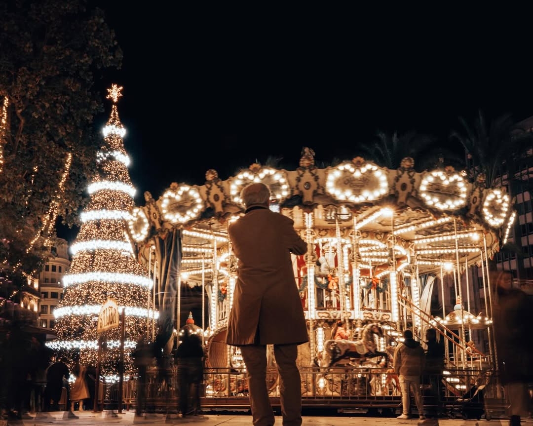 La iluminación navideña, lejos de convertirse en protagonista absoluta, se integra como lenguaje: acompaña, modela, sugiere, nunca compite con la historia que sucede delante del objetivo”. Con todo esto, Hortelano consigue centrarse en los valencianos y lee la Navidad a través de sus capas de luz que quedan ahora al descubierto a través de sus fotografías.
