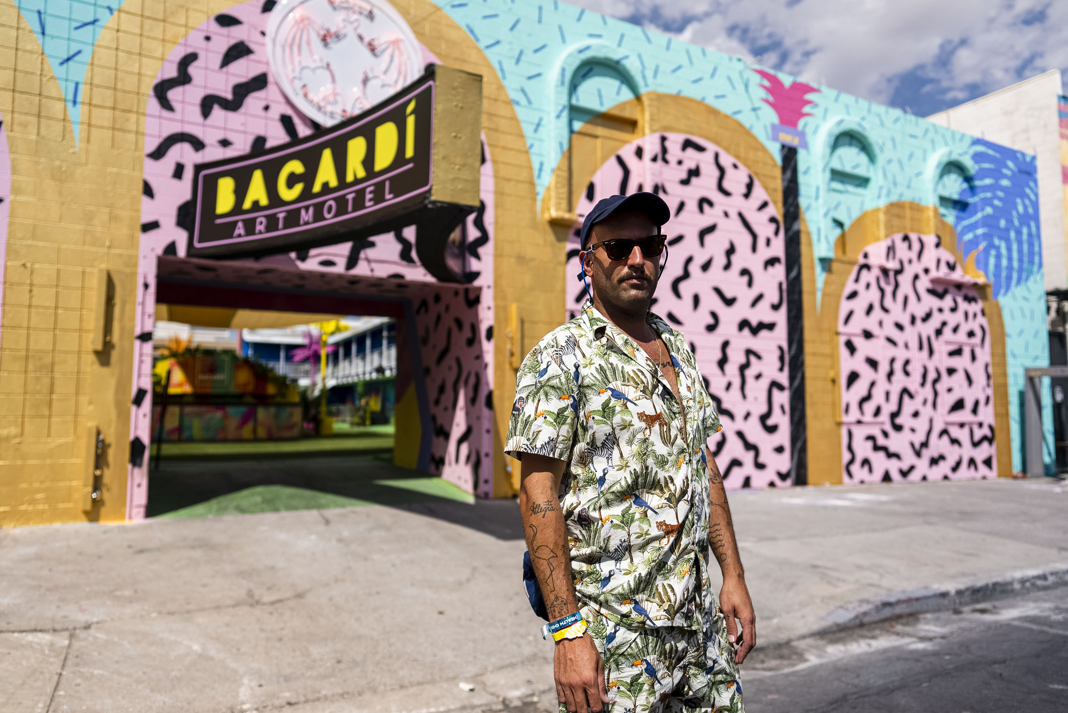 Tras la intervención, este verano, se trasladó a Las Vegas seleccionado por la marca Bacardí, quien lo definió como “un artista con un talento único a la hora de transmitir al público una energía positiva y unas ganas de vivir que hacen que todos los espacios que son intervenidos bajo su estilo se conviertan en espacios de vida”. El encargo consistía en pintar un motel de los años sesenta en el que cada año organizan el festival Life is Beautiful. “Para nosotros, devolverlo a la vida con un lenguaje contemporáneo y actual ha supuesto un reto”, confiesa Picazo. Una fachada de más de doscientos metros cuadrados que daban paso a un patio interior en el que también coordinó todo el diseño, iluminación y sonido. “Allí se celebran conciertos, performances y sesiones de música que buscan, en la suma de sus elementos, conformar el lugar ideal para que cada uno consiga despojarse de las apariencias, sin máscaras ni disfraces, siendo uno mismo”, describe. Su intervención ocupó incluso el escenario.