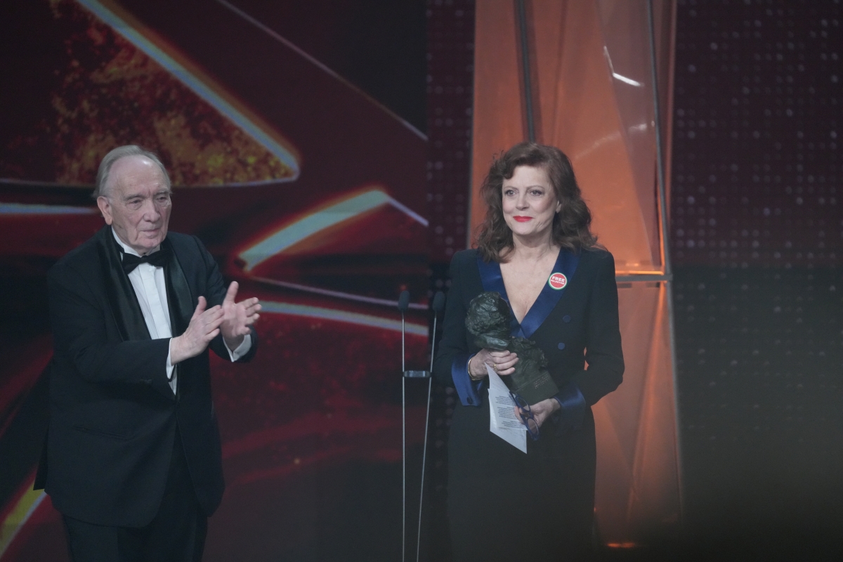 La actriz recogió el premio que se le entrega por ser una de las actrices “más destacadas del cine de Hollywood” y una firme defensora de los Derechos Humanos. Se subió al escenario con una enorme ovación y un pin que pedía la liberación de Palestina -que llevaban casi todos los actores en la alfombra roja- y quiso agradecer el galardón a todos aquellos que cuentan historias. “Me encanta vuestro arte y vuestro presidente, que habla con tanta dignidad moral y lucidez que me ayuda a sentirme menos sola en el mundo”. También quiso resaltar cómo el ser humano se tiene que centrar en lo bueno para seguir avanzando: “Centrarnos en lo positivo nos lleva a tener la posibilidad de cambiar el rumbo del mundo en el que vivimos”.
