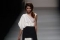 El diseñador rompe con la monotonía del negro combinando vestidos blancos y azules con grandes cinturones dorados o verdes. Palacio también incluye algún que otro vestido salmón vaporoso y definido por tablas. El arriesgado conjunto del azul y el verde hace de sus diseños algo singular y poco frecuente.