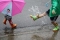 Mientras tanto, Mozah se reencarnó en el glamour de los años 50 con un vestido morado largo, de falda acampanada, escote barco y manga francesa. Completó su impresionante look con uno de sus famosos turbantes, un lazo negro en la cintura y altísimos peep-toe.