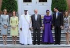 A su llegada, la jequesa, de riguroso blanco con vestido que estilizaba al máximo su figura y turbante a juego, cinturón marrón en la cintura y chaqueta sobre los hombros, se distinguió por su sofisticación y saber estar, dejando en un segundo plano a la Reina Sofía que, muy guapa, iba con un dos piezas de seda color verde manzana, el mismo tono que eligió para el almuerzo.