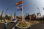 Varios vehículos recogieron a pie de pista, en la T1, en medio de un fuerte dispositivo de seguridad, a la comitiva que acompaña a la primera dama de EEUU para su traslado al hotel Villa Padierna, donde tienen 60 habitaciones reservadas y adonde llegaron sobre las 11.45 en 14 coches.
