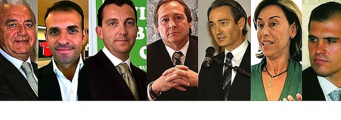 (Desde la izq.: Francisco Roig, Fernando Gallego, Javier Soler, José Tormo, Manuel Setién, Reyes Ballester y José Luis Miguel)