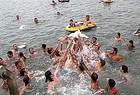 Después de estas dos actividades tradicionalmente se lanzaban patos desde una embarcación para que fueran cogidos por los bañistas.