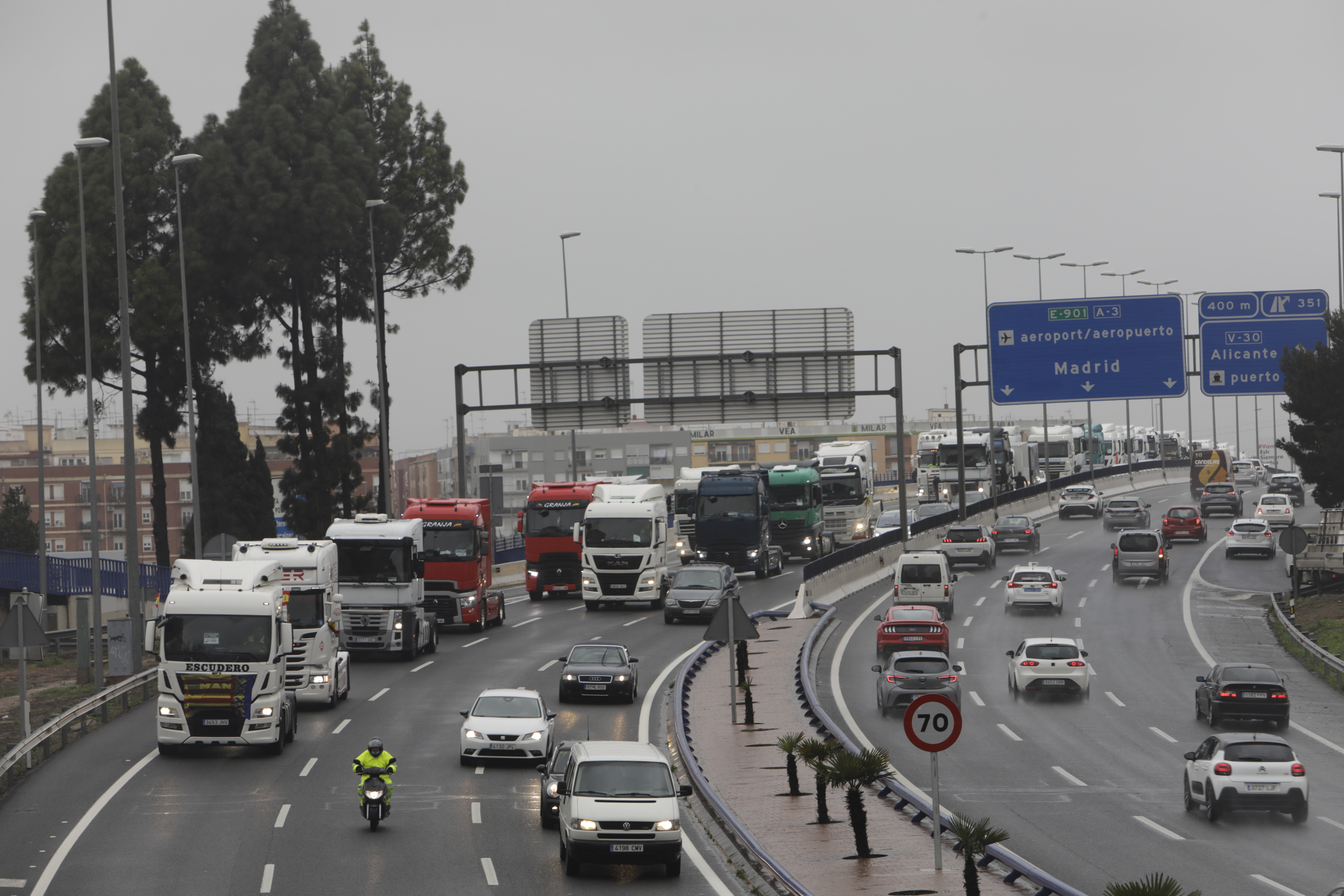 Centenares de transportistas se suma a la marcha lenta en Valencia contra la escalada de precios (Fotos: Eva Mañéz)
