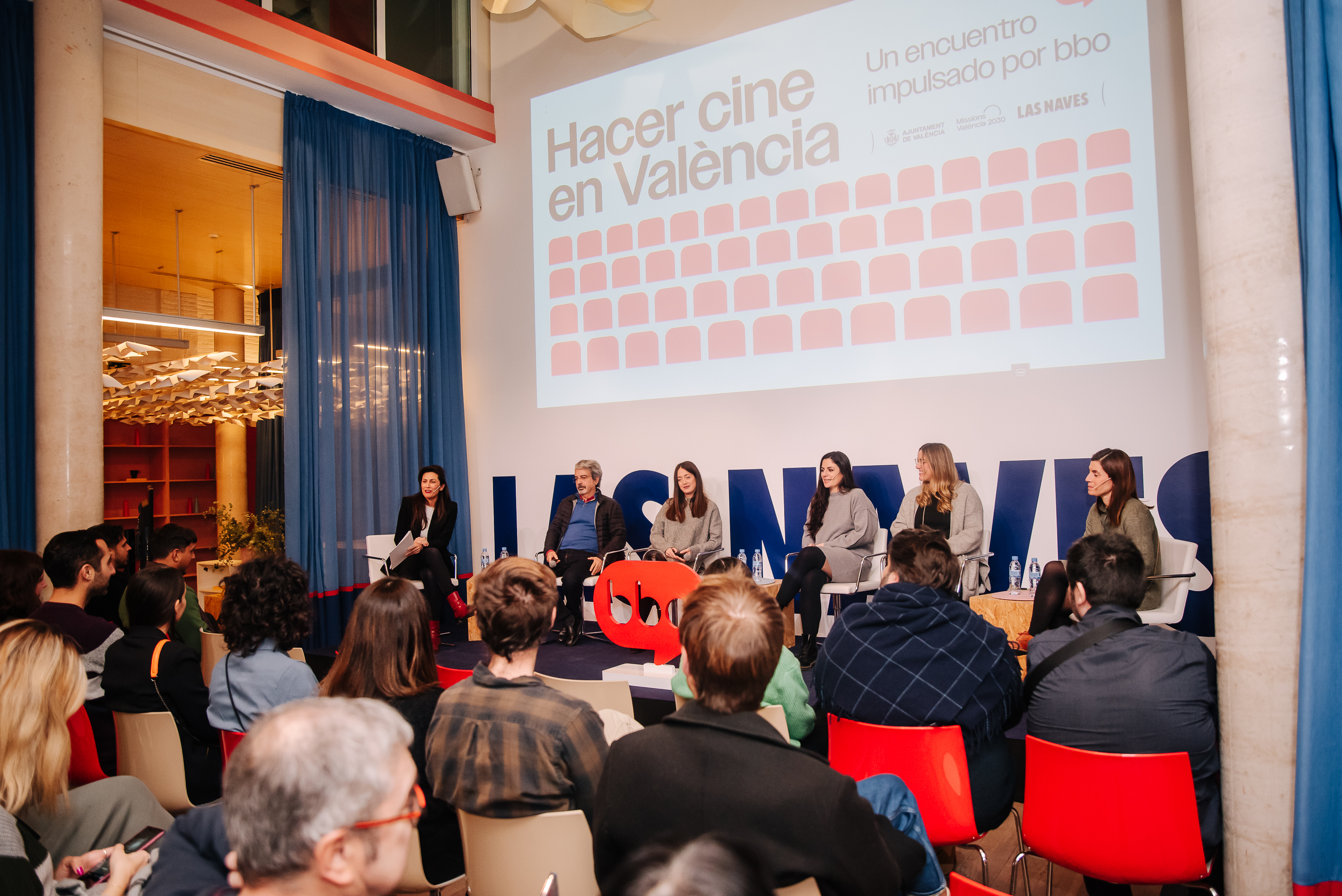 La cita con representantes del audiovisual valenciano se celebró ayer, jueves 26 de enero, en el centro de innovación social y urbana de Las Naves con un gran éxito de participación, sobre todo entre el público más joven.El encuentro ‘Hacer cine en València’, organizado por la agencia valenciana bbo, surge con el propósito de analizar la actualidad del sector audiovisual valenciano. Moderado por la periodista y productora, Laura Grande, el evento contó con cinco participantes vinculados con el Séptimo Arte en la ciudad de València: Antonio Such, director y programador de los cines Babel, guionista, director de cine y vocal de PAV (Productors Audiovisuals Valencians); Pepa Jordá, responsable de Valencia Film Office; Sara Mansanet, directora de La Cabina (Festival Internacional de Mediometraje); Lorena Lluch, productora en Filmeu y vocal de la AVAV (Academia Valenciana del Audiovisual); y Begoña Ballester-Olmos, directora y fundadora de bbo.