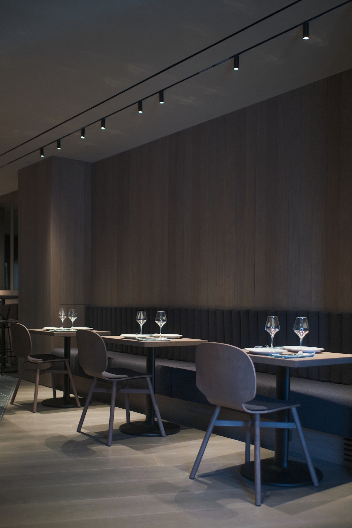 Y es así como entramos en un espacio moderno –muy alejado de esa idea de bistró francés que tanto acompaña a L’Entrecôte Café de París–, repleto de detalles actuales donde el minimalismo de Francesc Rifé hace un constante acto de presencia. Además de la propuesta gastronómica, Chez Filete destaca por su apuesta por la música: altavoces y una mesa de sonido en la propia barra, prometen regalarnos la mejor de las veladas. Y es que a medida avanzan las horas del día, la oferta musical (y también la iluminación del local) evoluciona en sintonía a lo que la situación demanda en cada momento.