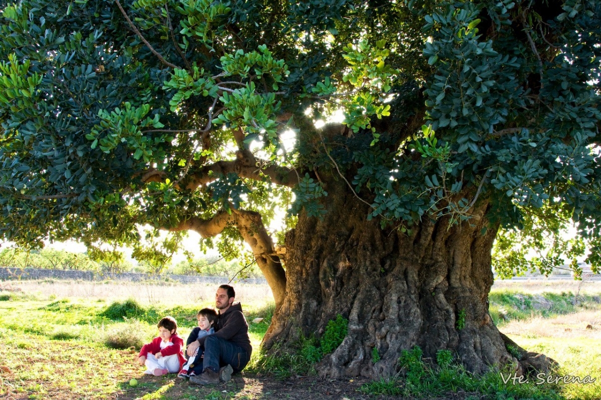 Estas garroferas centenarias, con sus retorcidos troncos y la magnificencia de sus copas, han conseguido incluso parar una planta fotovoltaica que estaba prevista que se construyera en 2022. Al pie de la sierra de Chiva había proyectadas ochocientas hectáreas —alrededor de mil campos de fútbol— de placas solares que se iban a llevar por delante buena parte del paisaje de la Serranía. Desde la Plataforma de la Sierra de Chiva, alegaron exponiendo que 150 árboles monumentales iban a ser afectados, y consiguieron parar esta aberración. «Cuando sales de aquí no ves garroferales, y es uno de los paisajes más amenazados. Es un paisaje culturalmente muy importante, muy auténtico, que corre el riesgo de desaparecer», afirma Serena. El trabajo de la plataforma desde hace quince años y una concienciación cada vez mayor de la sociedad ha hecho que una parte importante de nuestra historia siga hoy viva.
