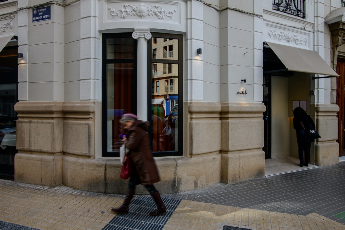 Sutil trabaja con carta. Una parte de ella es una propuesta que quieren que perdure en el tiempo, con platos muy trabajados y que ya han detectado que funcionan muy bien como el solomillo Wellington, las kokotxas al pil pil con guiso de garbanzos o la molleja. Otra parte se centra en platos vinculados a la temporada: setas, caza, alcachofas con el frío. Y un fuera de carta potente con tres o cuatro platos diarios también asociados a lo que haya en ese momento –ayer, sepionet con papada; colmenillas con anguila y jamón; una tosta de foie micuit con setas escabechadas; y unas quisquillas de Motril curadas en una sopa de cebolla–. Los pescados a la brasa son también importantes: salmonete, cabracho, urta, denton… piezas pequeñas abiertas en mariposa al hosper. Siguen afinando, probando, moviendo cosas. En tres semanas no se puede armar nada definitivo, pero se les nota que tienen muy claro el rumbo a seguir. Prueben las pencas de acelgas con gambas y no se pierdan el postre de chocolate cuando vayan. La longaniza de Ontinyent –ciudad natal de Sara– llega con el aperitivo, y me atrevo a decir que solo por ella, merece la visita.