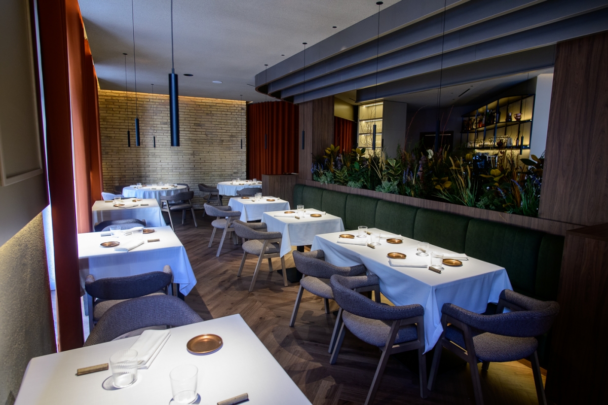 El local, cuya reforma e interiorismo, ha vuelto a recaer en manos del estudio de arquitectura FR Estudio –responsables también del local que abrieron los tres socios en la Alameda hace tres años– acoge desde que pones un pie en la puerta. Colores neutros y un mobiliario que otorga calidez, luz natural para el día e iluminación discreta para la noche. Cuentan con un semi reservado que se aisla con cortinas para entre cinco y ocho comensales. El resto de mesas son de dos a cuatro personas. Se puede forzar hasta cinco, pero no más. Es un restaurante de los que se habla con voz tranquila y una se acerca unos centímetros de más a su acompañante, al menos durante la hora de cenar.