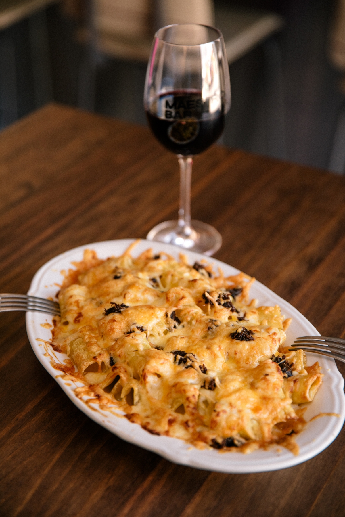 Existen pocas preparaciones más prosaicas que un plato de macarrones. Quizás tenga algo que ver la querencia del público infantil hacia este tipo de pasta lo que los ha denostado relegándolos a eso, un plato para niños que difícilmente pediría un adulto de paladar exigente fuera de casa. Pero algo está cambiando y no me extrañaría que los macarrones se convirtieran en el próximo tartar. La primera vez que los vi fue en Maestro, el bar de los hermanos Gómez, abierto hace algo más de un año. Allí se han convertido en una de las propuestas más apetecibles de la carta. Sus macarrones se basan en una receta que les hacía su madre, Cáliz, en casa, y se elaboran con una bechamel, carrillera desmigada y una buena dosis de queso que, al gratinar, les dota de una costra crujiente que envuelve una salsa cremosa y adictiva. Nacho Gómez, uno de los dos pilares de Maestro, reconoce que es un plato que está volviendo a los bares y que viene de una corriente que se inició en Barcelona. «Allí ya hay varios restaurantes de perfil gastronómico como Monocrom o Gresca donde puedes tomarte unos macarrones. Así que pensamos,"antes de que se pongan de moda aquí, ¿por qué no los empezamos a trabajar?"», cuenta.