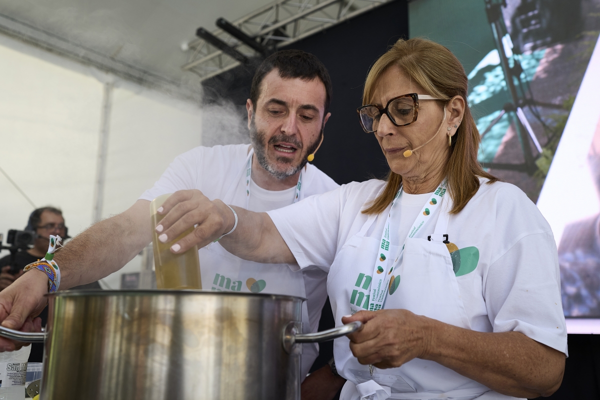 Al escenario se subieron varias cocineras que también son madres: ellas ahora sí tienen ese reconocimiento, al menos mediático. Este año, la región invitada era la Comunidad Valenciana. Alejandra Herrador de Atalaya reivindicó el caldito de pollo, tan maternal. El no tirar nada, como hacían nuestras abuelas. Muchos aprendizajes que, por culpa de las prisas y la comodidad, a veces se nos olvidan. Ellas lo sabían todo. Las abuelas, antes de serlo, fueron madres y también hijas. Es una cadena de madres que alimentan y nutren, que crían y cocinan. El cordón umbilical raras veces se rompe. La madre de Alejandra, por ejemplo, elabora toda la vajilla de Atalaya. Begoña Rodrigo habla de la importancia de inspirar a otras mujeres: “Si yo lo he conseguido, que no soy la más lista de la clase, ellas también pueden”. Ser espejo, ser referente. Ella también es madre y sale a menudo de la cocina para reivindicar con sus palabras, siempre tan afiladas y certeras. “No todas las madres cocinan bien”, esgrime. Sus verdades siempre alimentan.