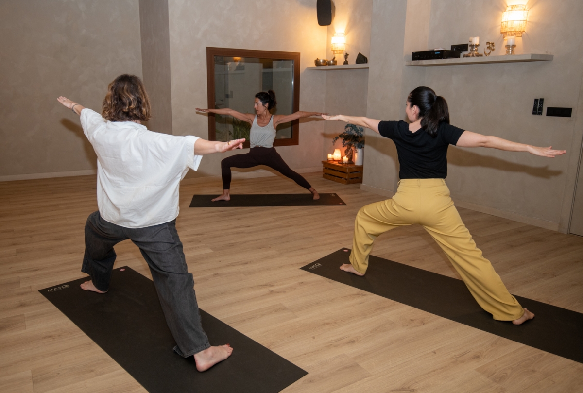 Sonia apuesta ahora por este proyecto urbanita “para poder llegar a mucha más gente”, porque es consciente de que al MasQi de Sierra de Mariola no puede ir todo el mundo por su ubicación, precio y disponibilidad. Pero a MasQi Alicante sí. Dentro de su bloque “YOGA & MOVE”, sus horarios son amplísimos: las clases de Vinyasa, Hatha y Yoga Nidra, Pilates o Barre comienzan a las 6 y media de la mañana y terminan a las 9 de la noche, incluyendo el mediodía. También hay sesiones los sábados y domingos. Además, se puede reservar una clase suelta (a través de la web o de su app) o bien adquirir una membresía, si se desea una regularidad. “Hemos intentado que sea un concepto holístico que abarque 360 grados, para convertir la práctica en un hábito que nos sostenga”, explica Sonia Ferre a Guía Hedonista. Otro de los pilares de MasQi Alicante es el llamado “RECOVERY”: un spa basado en el contraste de temperatura, muy beneficioso para el sistema nervioso, que cuenta con una sauna finlandesa, una pileta de agua helada y una piscina caliente. Masajes, terapias energéticas y de autoconocimiento como el tarot o la astrología completan el abanico, con el concepto “HEAL”, centrado en el wellness. “Igual que hay gente que va a MasQi Mariola a hacerse un programa de transformación personal, ahora pueden venir al de Alicante sin necesidad de salir de la ciudad”, explica Sonia Ferre.