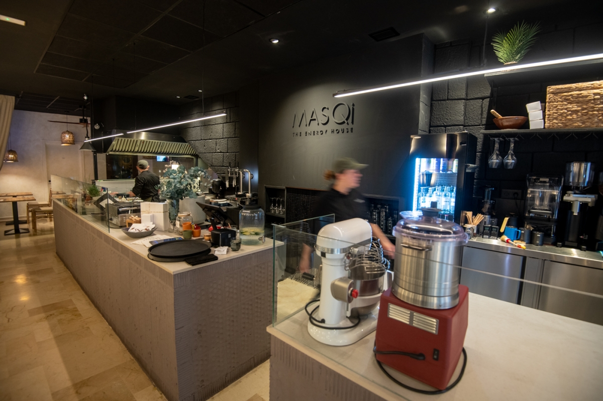 Otra de sus piedras angulares es “FUEL”, para recargar energías con la comida orgánica de su cafetería y restaurante, que tiene la cocina abierta todo el día, trasladando la filosofía del restaurante de MasQi en Sierra de Mariola a la ciudad. Aquí puedes desayunar de 8 a 12 de la mañana manjares como su porridge de arroz de integral dulce o salado, su bocata alicantino (aspencat con azafrán, caballa ahumada y romero) o una tostada de pan de masa madre con aguacate de La Marina, trucha del Pirineo curada en casa y mostaza de algas. Trabajan con productores locales como Obrador Candeal (Elda), Viveka Ahumados (San Juan) o Aguacates de La Marina (Bolulla), ecológicos y madurados de forma natural.