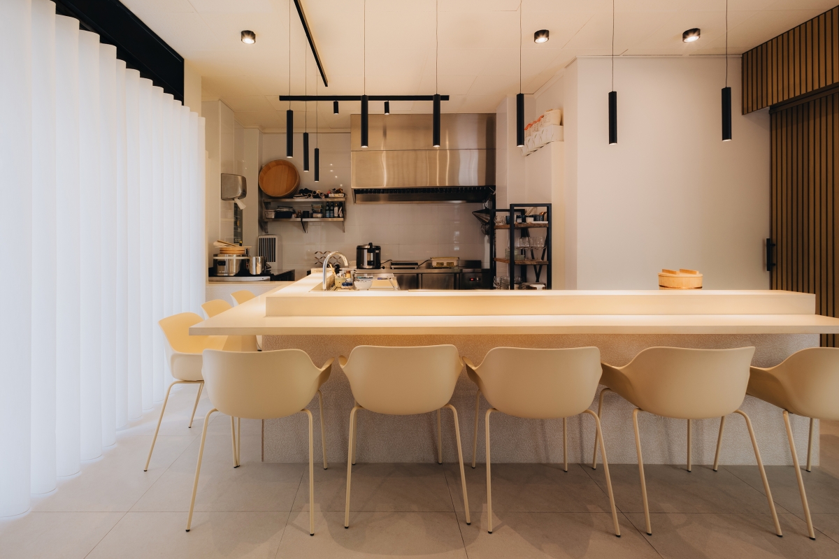 Con un aura similar a esas que desprenden los speakeasy de turno, nos encontramos desde la calle con un local con una gran cristalera protagonizada por una gran cortina blanca donde todo lo que ocurre en su interior queda a manos de los pocos comensales (máximo ocho, pero lo ideal es que sean seis) que cada noche, de martes a sábado, tienen la oportunidad de sentarse en la barra para comenzar la velada de manera simultánea frente a Rui y dejarse llevar por todo lo que tiene preparado para esa noche.
