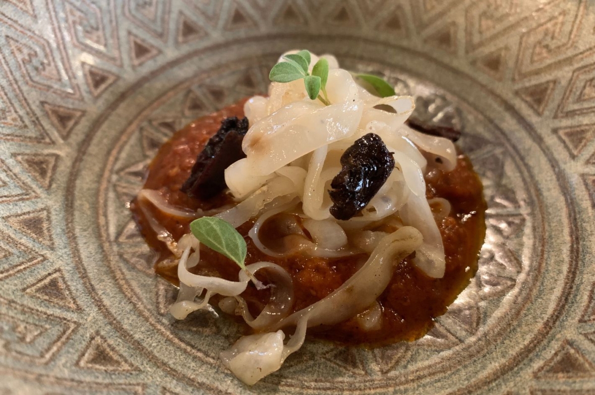Otra clara representación de esta filosofía del “menos es más” es el plato de pasta de calamar a la pizzaiola, que es una salsa tradicional italiana elaborada con tomate reducido, orégano y aceitunas negras. “Es la que hacen las madres para acompañar con un filete de carne cocida. No se suele encontrar en los restaurantes porque es muy de casa”, nos cuenta Giovanni.