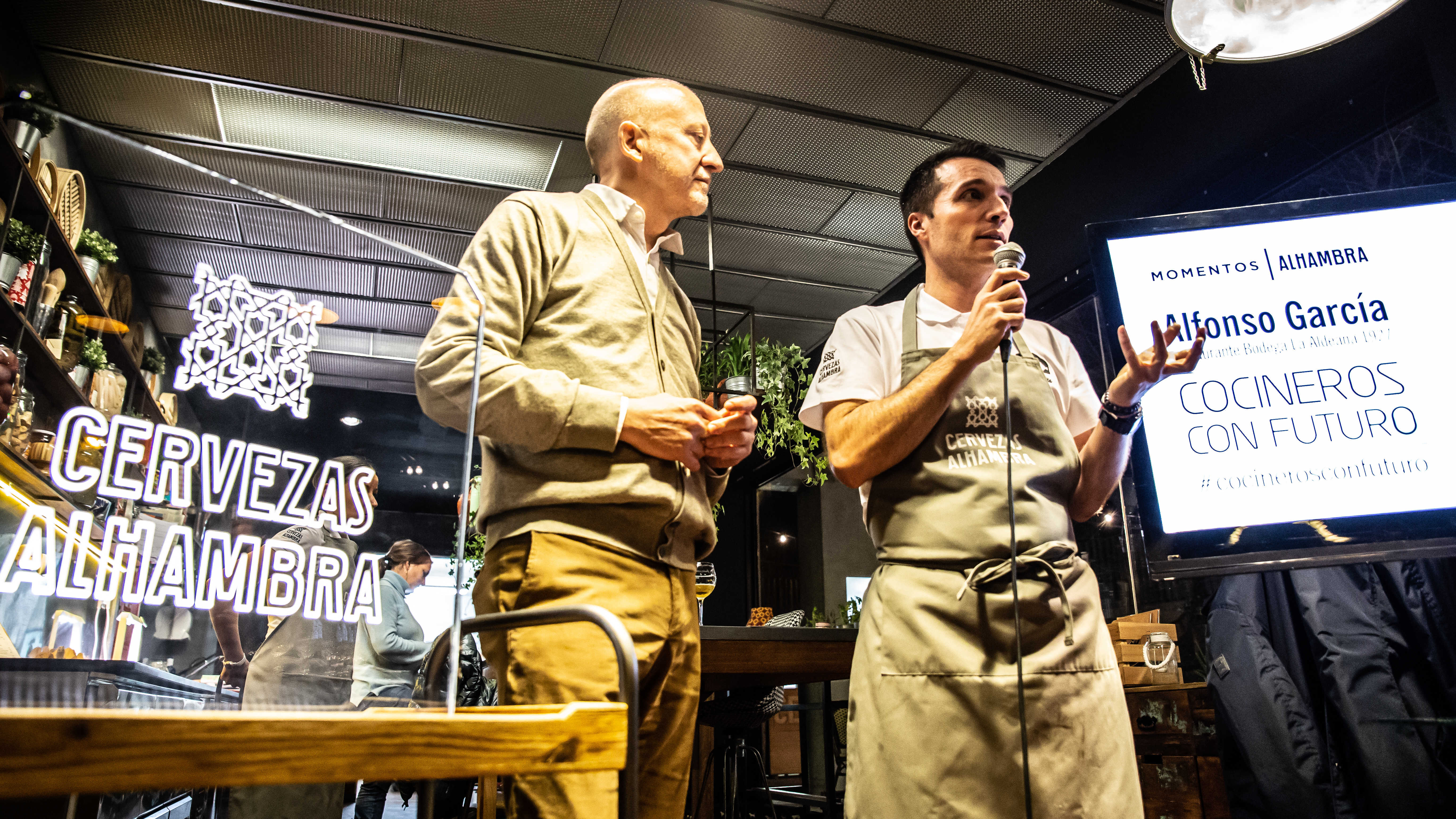 El cocinero de El Cabanyal ha llevado a cabo un menú realizado en directo ante los asistentes dando lugar una conversación que ha acercado su talento culinario al público. La propuesta gastronómica ha tenido como fuente de inspiración el singular proceso de elaboración de Cervezas Alhambra.