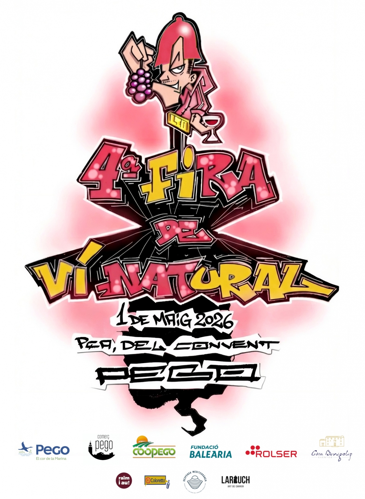 Por cuarto año consecutivo, el municipio alicantino de Pego, en la comarca de la Marina Alta ya lindando con la Safor, se convertirá en la capital valenciana del vino natural. La temática de esta edición de la Fira del Vi Natural de Pego, que se plasma en el cartel diseñado por @leon_de_judah es la cultura hip hop, “tan alejada del vino natural pero que comparte principios filosóficos fundamentales como la inclusión y las relaciones humanas”, explica Jérôme Chesnot, creador de Vi Natural y organizador del evento, que tampoco sería posible sin la ayuda del Ayuntamiento de Pego, la Asociación Comercio Pego, COOPEGO, Rolser, la Fundación Baléaria, Casa Benigalip, Despensa Mediterránea y Larouch.