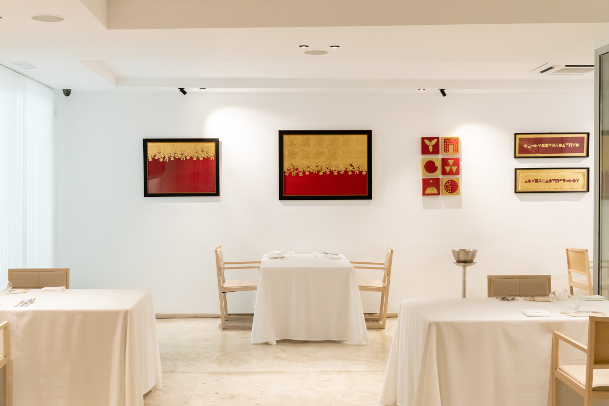 Las muestras cambiarán periódicamente e inspirarán, como mínimo, uno de los platos del menú degustación: tanto por estética como por contenido. Desde septiembre, se puede contemplar la obra pictórica de la artista Cristina Navarro, en concreto parte de la serie "PERMANENCIAS ESTABLES" (2002). El plato especial que María José Martínez ha diseñado con motivo de esta exposición es petit de chocolate y cereza.