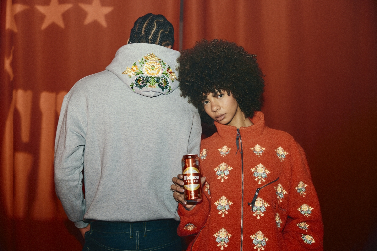 El resultado es una colección en la que el dibujo textil de la indumentaria valenciana diseñado por Cervera cobra una nueva dimensión en prendas de corte urbano donde el bordado adquiere protagonismo. Las sudaderas y la chaqueta vaquera incorporan los motivos florales y los dorados sobre algodón y denim, mientras camisetas, calcetines y pañuelos completan la propuesta trasladando esos mismos códigos al conjunto de la colección. Así, el diseño que viste la Edición Especial de Mahou Cinco Estrellas para Fallas trasciende la etiqueta y se convierte en prenda urbana.