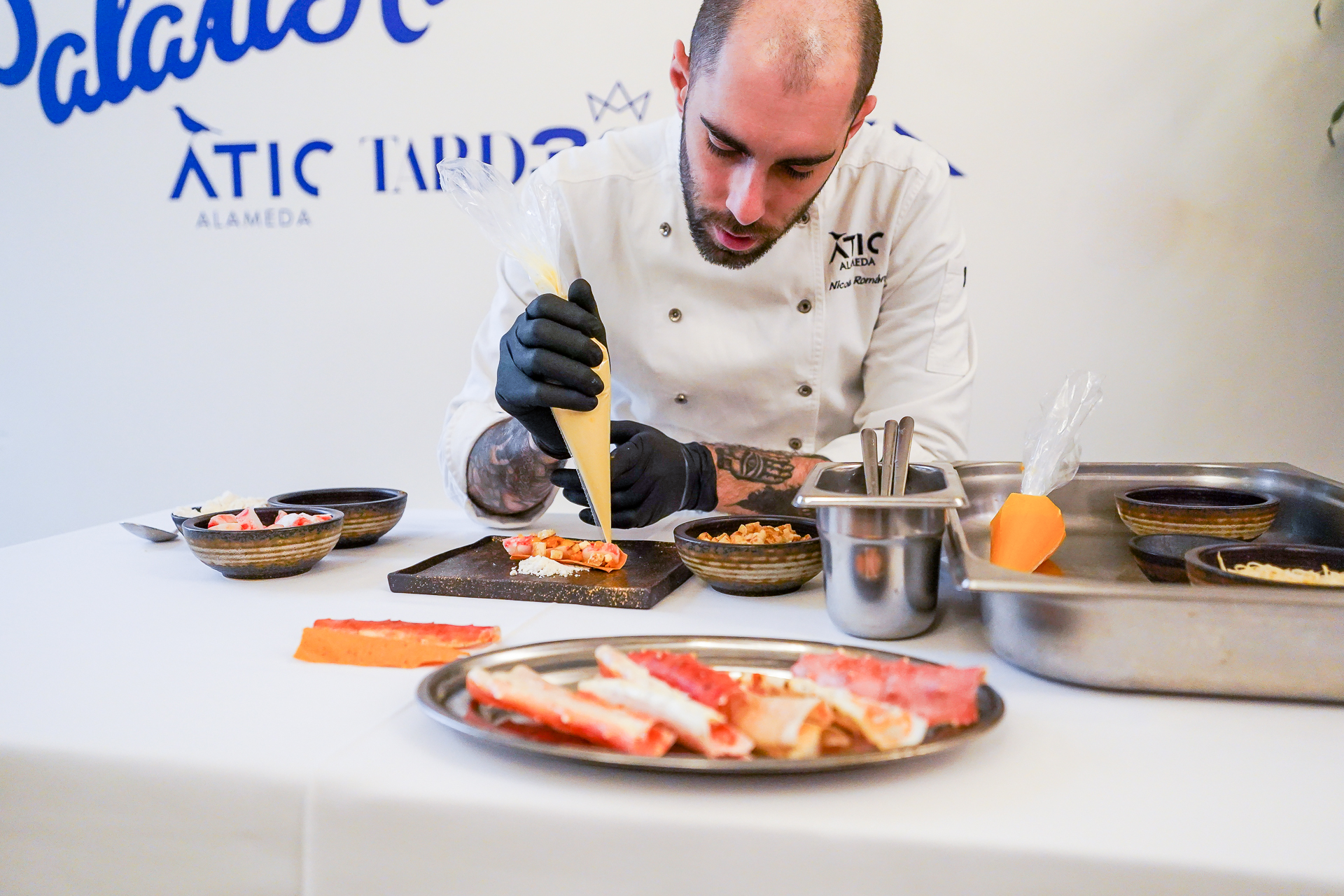 Durante la presentación los asistentes han podido ver en directo la elaboración de la mejor tapa de España, una elaboración cuidada para hacer las delicias de los mejores paladares. La tapa se podrá disfrutar en Átic Palau Alameda durante las dos próximas semanas bajo reserva.