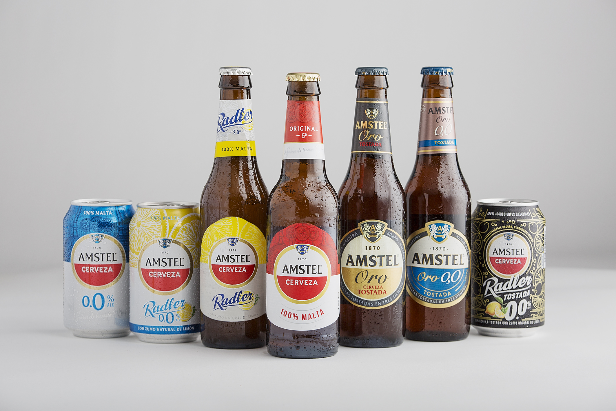El nuevo etiquetado estará presente en el canal de alimentación y hostelería para todos los formatos (lata, botella de quinto, tercio y litro, así como packs de producto) de las variedades Amstel Radler; Amstel 0,0; Amstel Clásica y la nueva incorporación, Amstel Clásica Tostada. Y conservan su imagen actual, tan icónica, las premium, como Amstel Oro y su versión 0,0, o Amstel Radler Tostada, también con su versión 0,0.