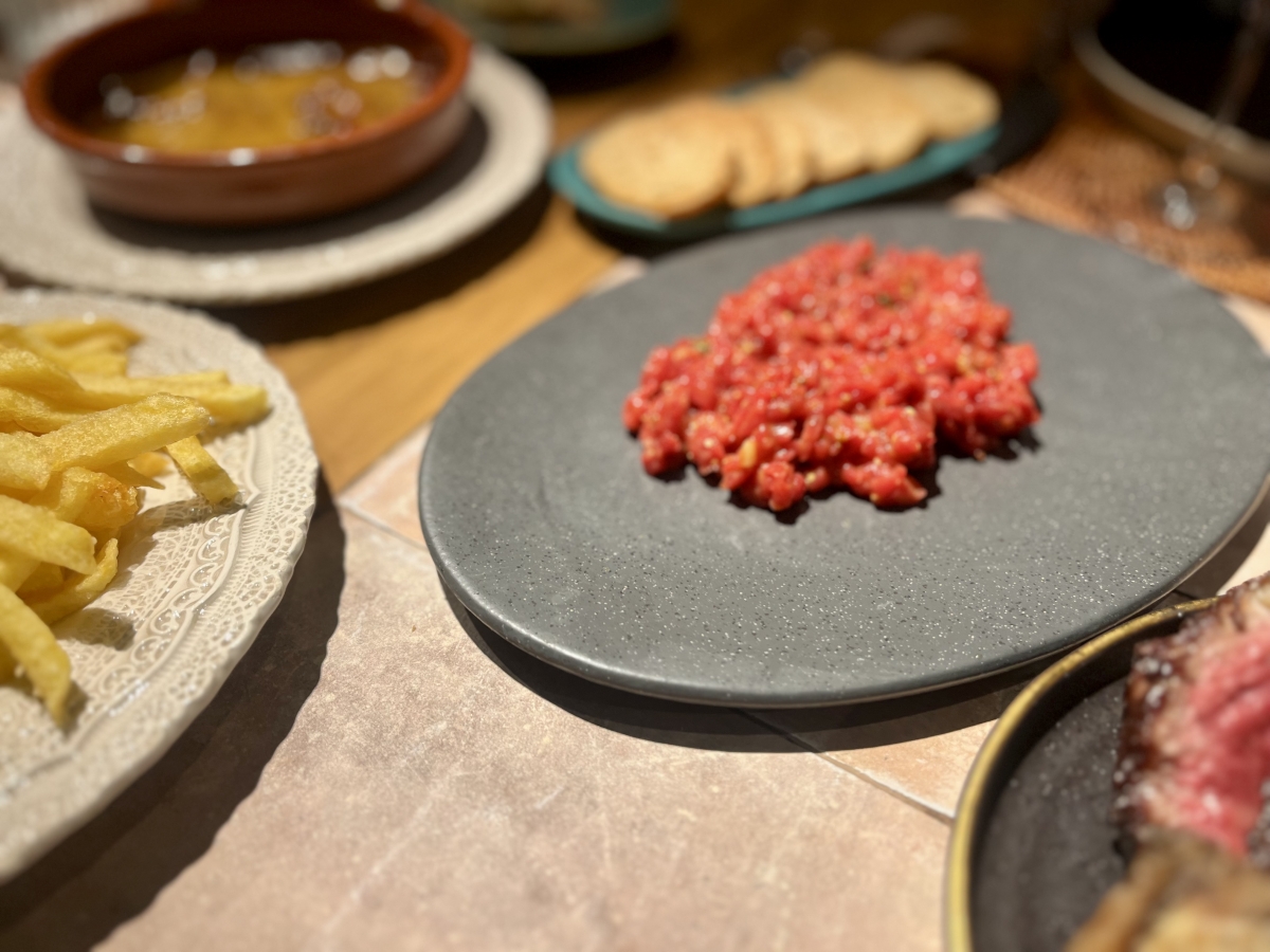 - - En Pedraza preparan un steak tartar con una de las partes de la chuleta que al fuego queda demasiado dura al paladar.