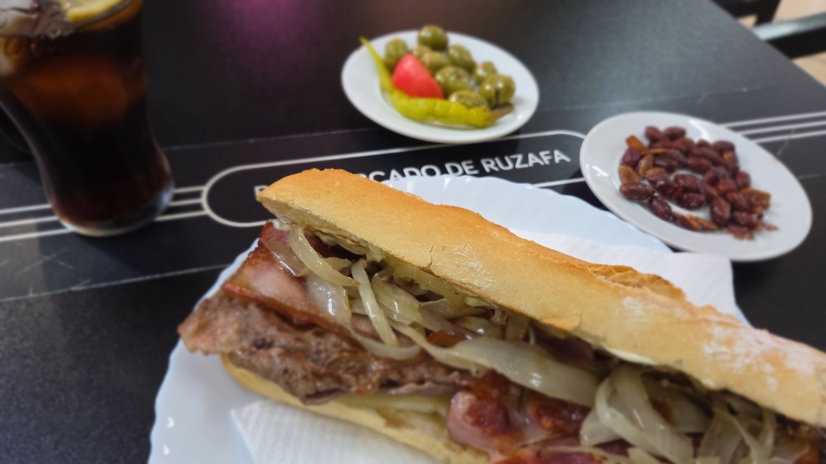 I d’entre totes les opcions esmorzadores, hi ha un entrepà que causa amor-odi, el de carn de cavall. Si eres dels que t’agrada has de tastar el Ruzafín, una barreja que cuinen al bar del Mercat de Russafa i s’ha convertit en tot un clàssic. Pa del forn San Valero lleugerament torradet, carn de “potro” tallada ben fineta, unes tires de cansaladeta torrada, formatge tendre fos, ceba passada per la planxa i el toc suau de maionesa. El resultat pot semblar contundent, però és molt més lleuger del que sembla en aparença. De fet, el bacó i el poltre fan una lliga ideal, ja que el porc li aporta el toc salat que li falta al cavall.