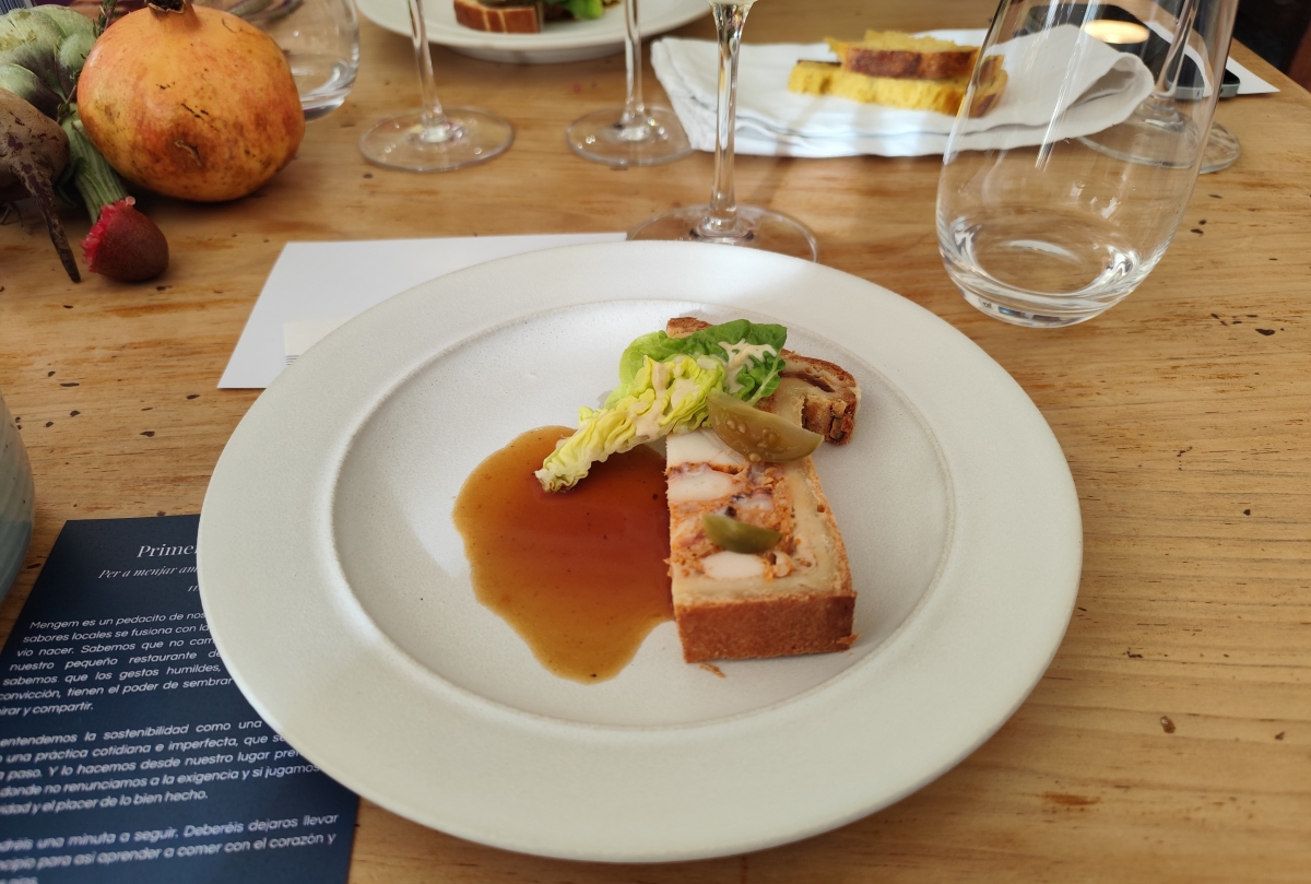 Mengem brinda la opción de escoger servicio a la carta u optar por uno de sus menús. Es un lugar en el que disfrutar de la sencillez de platos que expresan el sabor de sus ingredientes. Una sencillez aparente que muestra el gusto y el ingenio de las personas que lo cocinan. Entre sus platos y combinaciones: alcachofa, demi-glace de café y trufa fresca; pâté en croûte de pulpo y pollo; llongo –también conocido como espardenya o pepino de mar–, guisantes, avellanas y boniato; o solomillo de vaca, chirivía y salsa albufera, entre otros.
