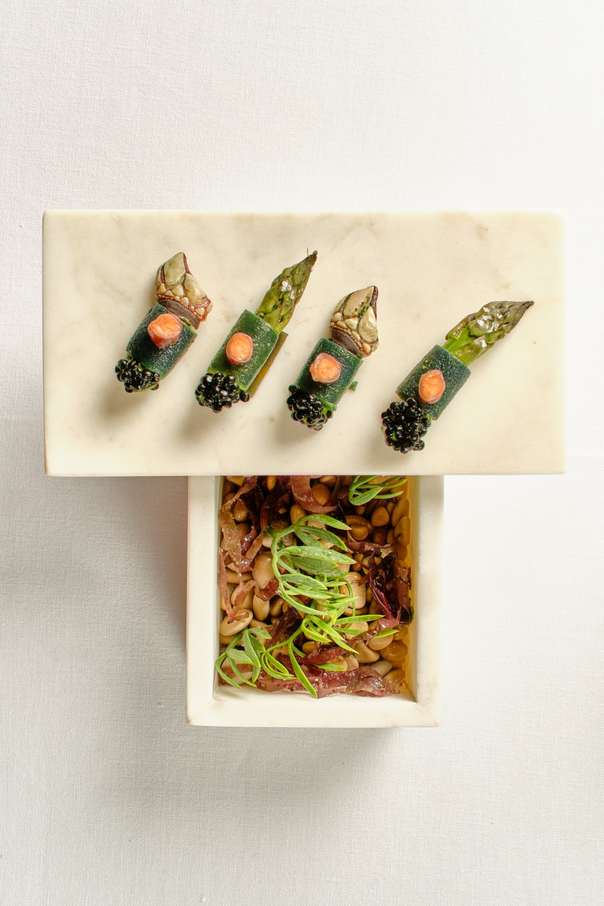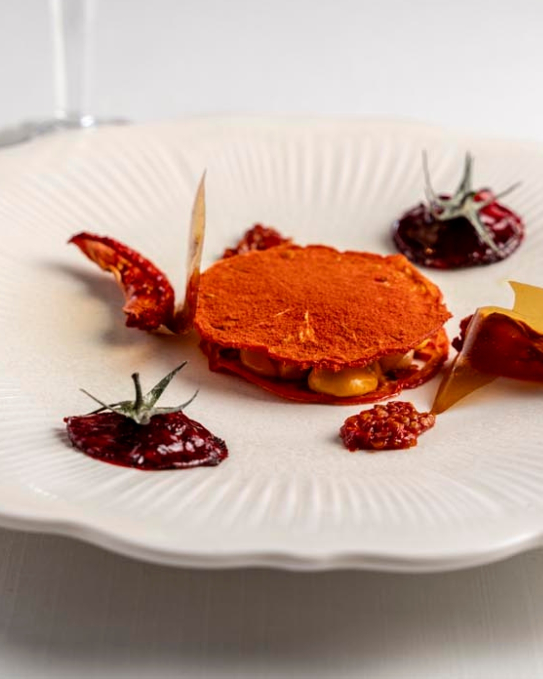 Su propuesta consiste en tres menús degustación (Terra, 90€; Ritual, 120€ y Nazario Cano, 150€). Mucho mar, mucho producto y una excelsa delicadeza en el fondo y en las formas. Cada plato es un derroche de técnica y de tiempo dedicado. Yo me pregunto: ¿es rentable este tipo de menús degustación? “Este concepto de restaurante tiene que vivir de otros hermanitos”. Leemos entre líneas: Madre, su proyecto más informal (también alojado en los hoteles Ritual de Terra tanto de Moraira como de Jávea), con un ticket medio más comedido y una cocina mediterránea apta para todos los públicos. Porque para ser honestos, y poner en valor el oficio, si estas propuestas tuvieran un precio justo, o si estuviéramos en una ciudad europea, el precio debería ser ostensiblemente superior.
