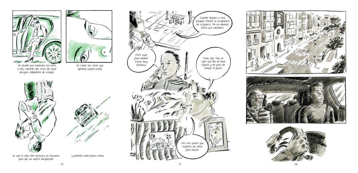 “Salam empezó como un relato corto que intenté estirar para convertirlo en novela, pero no daba para tanto. Acabó en un cajón porque me quedé en ese temido terreno de nadie, el de las malditas 50 páginas”, explica el autor, amigo y compañero de trabajo de Alamán en el Instituto Cueva Santa de Segorbe (uno es profesor de literatura, y el otro de artes plásticas y fotografía). “Conocí a Javier a través de una charla que dio sobre lenguaje y composición de cómic. Él me dijo que siempre había querido dar el paso a crear su propia obra, pero le faltaba una historia, así que le pasé alguno de los relatos que tenía parados y al que le vio más posibilidades fue a Salam”. El resultado es un volumen de 140 páginas que ha sido reconocido este año con el Premio Novela Gráfica Óscar Muñiz que otorga el Gobierno de Cantabria, y que acaba de llegar a las librerías de todo el país.