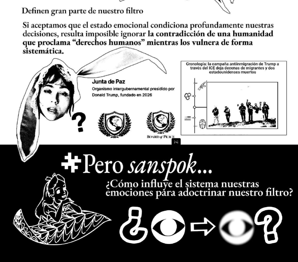 Entre la imagen, el manifiesto, el arte, el diseño y la música, Sanpok llega al Palau para convertir el cine en un arte “aún más total” dándole su toque propio y demostrando como puede recalar Alicia en el país de las maravillas cuando uno ya tiene desarrollado el córtex prefrontal. Con un acercamiento único a este clásico animado, recala en València para mostrar la inocencia de Alicia y su poder, que es la dulzura y su capacidad de preguntar para adentrarse en un mundo desconocido. “Independientemente de lo hostil y raro que es todo a su alrededor, Alicia conecta con su mundo preguntando y con su dulzura, con una predisposición única que le hace abrir todas las puertas”.