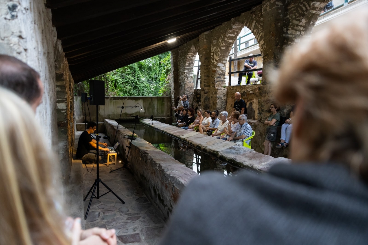 Una d’aquestes capes és el Cant de la Sibil·la, “un cant del segle XII que alertava del fi del món i que, en l’actualitat, té un vincle molt directe amb la crisi climàtica que vivim”, assenyala el músic. A més, ho fa sonar en veu femenina, una manera de recordar que els llavadors van ser durant segles llocs de treball i de trobada per a les dones. Amb aquest gest, la peça no sols parla de so i d’aigua, sinó que també convoca la tradició, la història i el llegat àrab, llegint el llavador des d’una perspectiva de gènere i com a espai relacional.