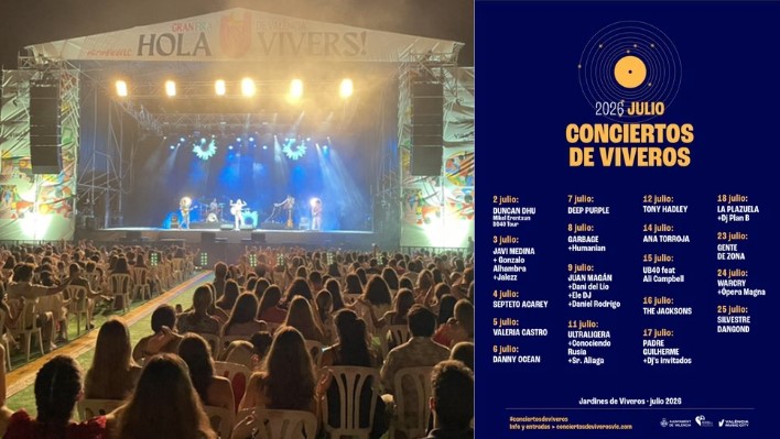 VALÈNCIA. Un año más, llegan los Conciertos de Viveros a València. Entre el 2 y el 25 de julio de 2026, la agenda cultural, enmarcada en la Gran Fira de València, se llena de nombres conocidos entre el público para dar pie a 18 noches de conciertos en directo y presentar a la ciudad de València como uno de los grandes escaparates musicales del verano.
