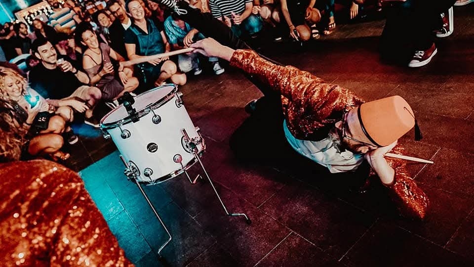 -Somos una banda exclusivamente pensada para el directo, lo cual no significa que no disfrutemos en el estudio, pero el concepto es el directo. Mamamos de esta cultural balcánica, gitana, mediterránea, donde el músico tiene mucha comunicación con el público, donde le hace muchas coñas, se acerca, le improvisa una melodía que puede resultar graciosa. El mundo del violinista cíngaro que es super virtuoso. Elementos como el ostinato del ritmo es como para impulsar el frenesí; las bromas cuando parecen que has terminado y vuelves a empezar, vas a generar un subidón en el público, cortas y los dejas con la miel en la boca. Ese tipo de bromas. Más escenografía, hablamos, elementos extra musicales para hacer una fiesta de nuestros conciertos, que también es la idea. Eso llevarlo al disco tiene su complicación. No obstante, en el próximo disco tenemos una cara que intenta representar lo que sucede en el directo. Víctor se deja el grupo y entra Rubén, que es un músico super potente, realmente es un bajista muy bueno que ha hecho que el sonido del directo sea muy duro, y en ese sentido redobló la calidad de nuestros directos. Además está Vina, que no es solo un batería brutal, es el verdadero front-man del grupo...sin él los directos de Llobarros no sería lo mismo.