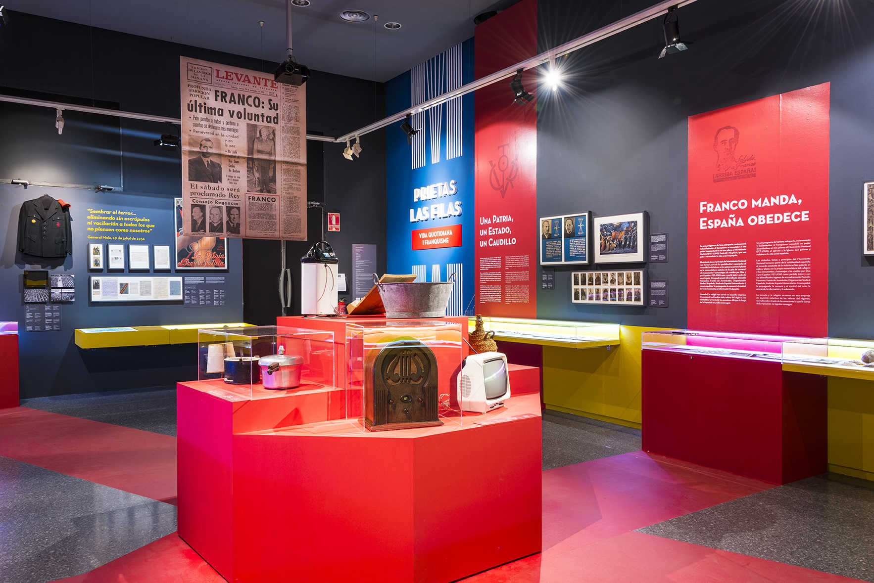Con esta exposición se aborda el Franquismo como régimen político y como ideología, sus formas de adoctrinamiento, la política de propaganda y la construcción de un sentimiento y una memoria nacional nueva. Los protagonistas de la exposición son los objetos que nos permiten analizar la omnipresencia de los símbolos y las consignas de un régimen totalitario en la vida cotidiana, en la educación, en las escuelas o en los roles de género y en los escenarios privados y públicos.